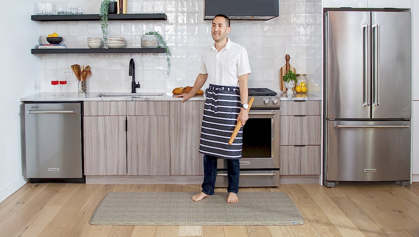 Walking on them is like walking on a cloud. Removes the stress of standing and working in the kitchen. I love the new and improved Gel Pro Mats!