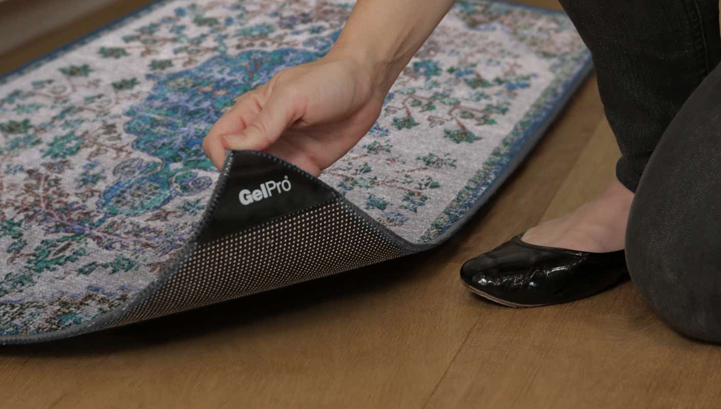 Each rug contains a high-friction bottom surface and patent-pending GellyGrippers™ in each corner to firmly anchor the rug in place.